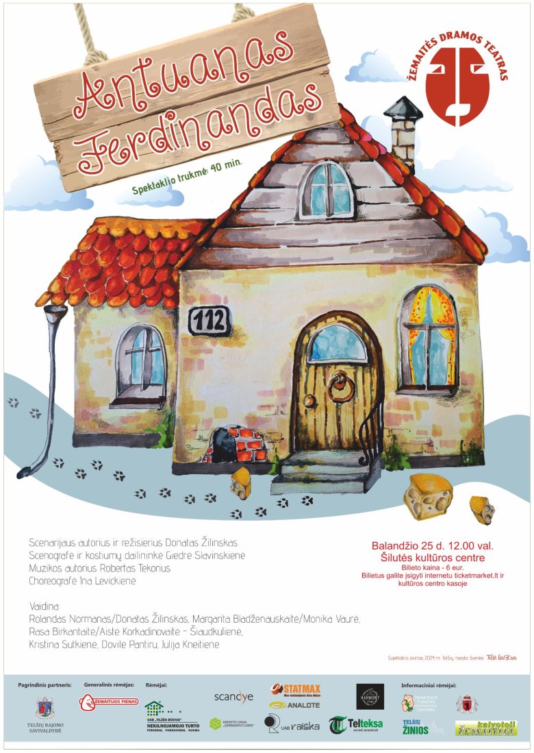 Spektaklis vaikams „Antuanas Ferdinandas“ – tai istorija apie nedidelį, o gal ir didelį rubuilį šuniuką, kuris tik išėjus šeimininkams pro duris, išsiruošia į kelionę. Kur, šį kartą, išsiruoš Antuanas Ferdinandas? Gal aplankys Vinzoro pilį? Gal Tauerio tiltą? O gal pasižvalgys po Londono miestą? Visa tai, mažieji žiūrovai, kartu su pelytėmis, pamatys spektaklyje „Antuanas Ferdinandas“.