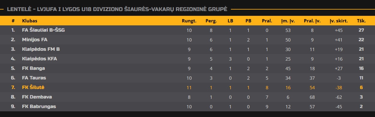 FK „Šilutė“ turnyrinėje lentelėje užima 7 vietą.