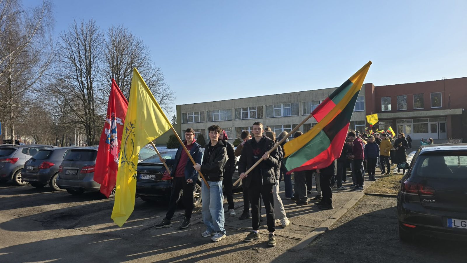 O keli šimtai Juknaičių pagrindinės mokyklos mokinių, skambant M. Mikutavičiaus dainai „Aš tikrai myliu Lietuvą“, patraukė į kelių kilometrų žygį „Laisvės vardan“ iki Alkos kalno.