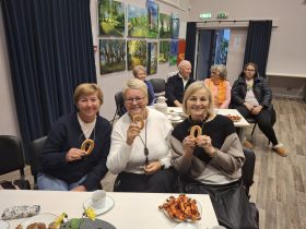 Susitikimo dalyviai Ramučių bibliotekoje apžiūrėjo dvi parodas: Pašyšių bibliotekos neformaliojo vaikų švietimo programos „Naminuko palėpė“ simegrafijos darbų ir Macikų socialinės globos namų užimtumo grupės „Molinukas“ darbų parodą „Keramikos magija“ (vadovė Beata Vaitelienė).